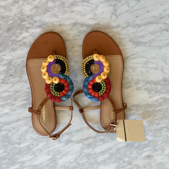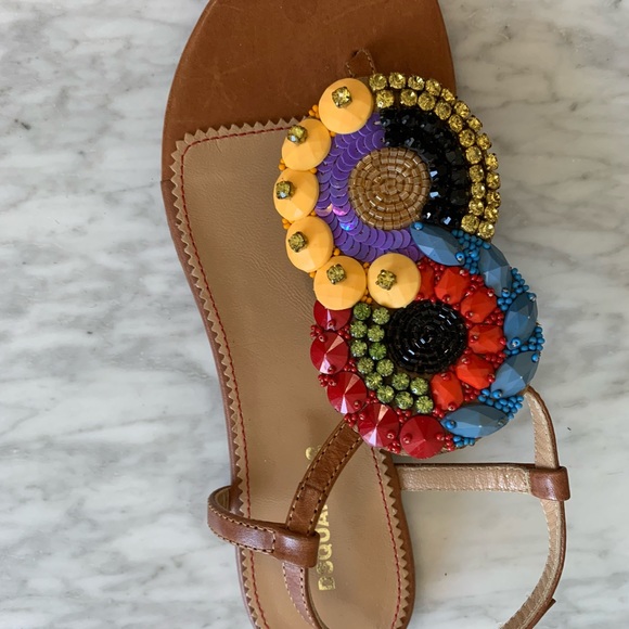 NWT DSquared Jeweled Sandals. Beautiful jewel designed Very small discoloration dot on leather of top left feet but not noticeable.