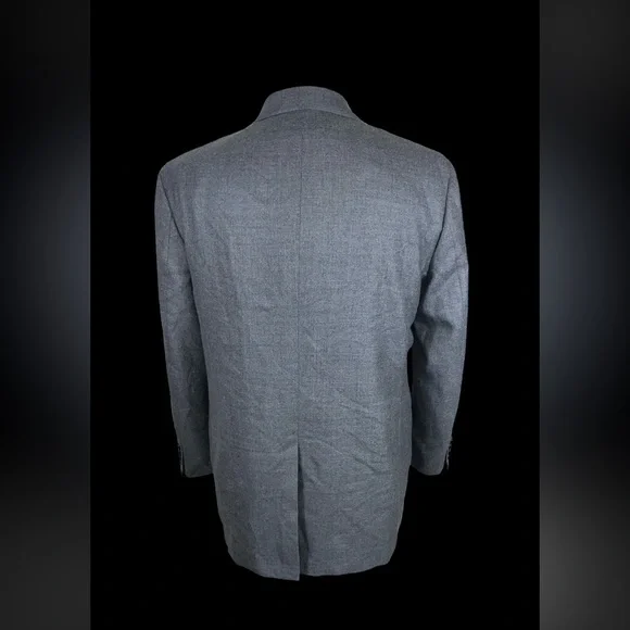 item is in excellent condition with no flaws. Mid wool flannel material in a mid gray color. Half lined. Perfect for the current season!Measurements are as follows:Pit to pit 22”Pit to bottom coat 20”Shoulder to cuff 23.5”Shoulder to Shoulder 19”Back of bottom collar to bottom coat 30.5”Single back vent