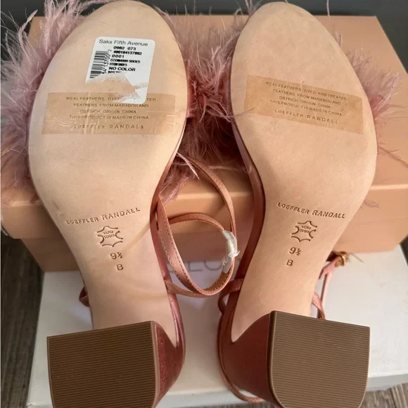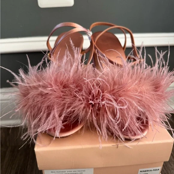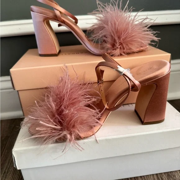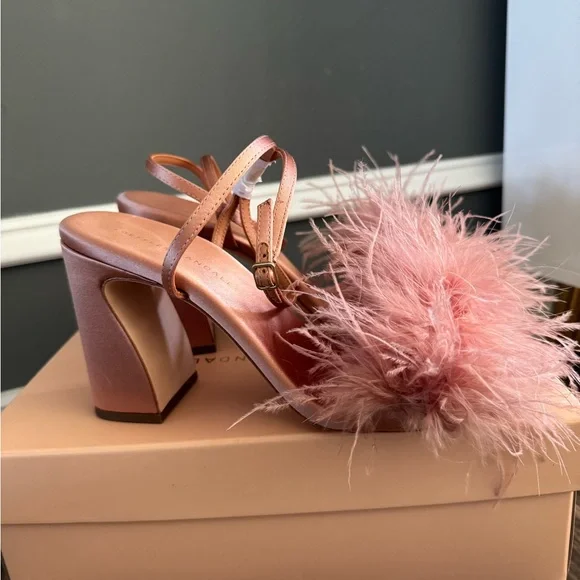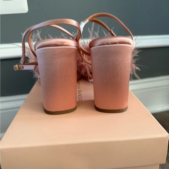 Loeffler Randall Pink Feathered Heels with Ankle Strap size 9.5