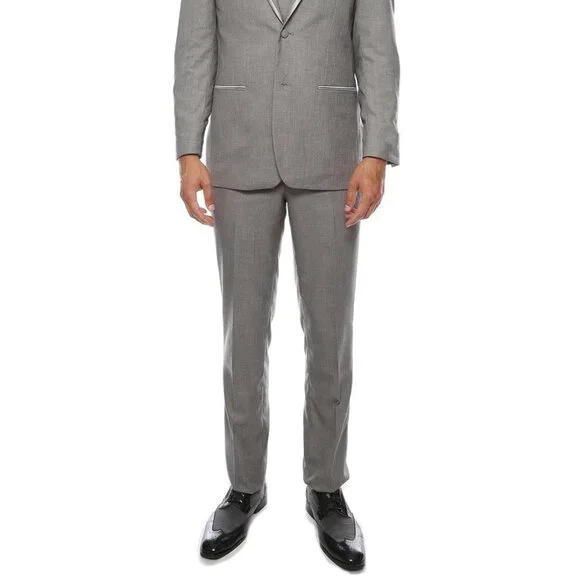 2 Button ClosureGrey Satin Trim Notch LapelModren FitMatching VestSide VentedModern Fit Flat Front PantsWoolImported