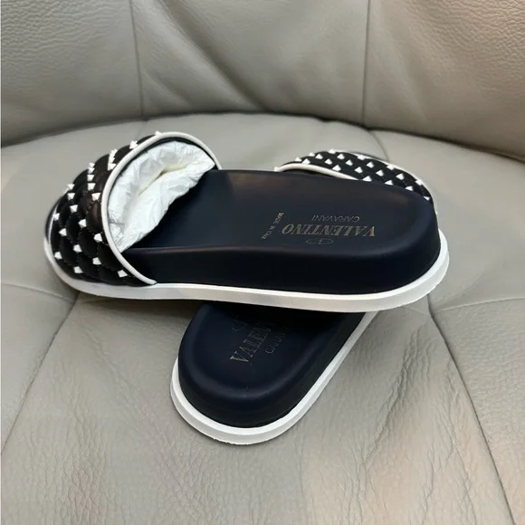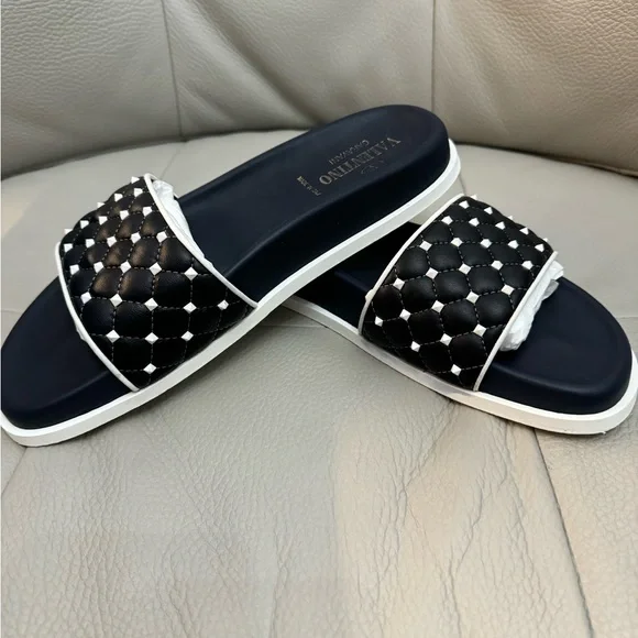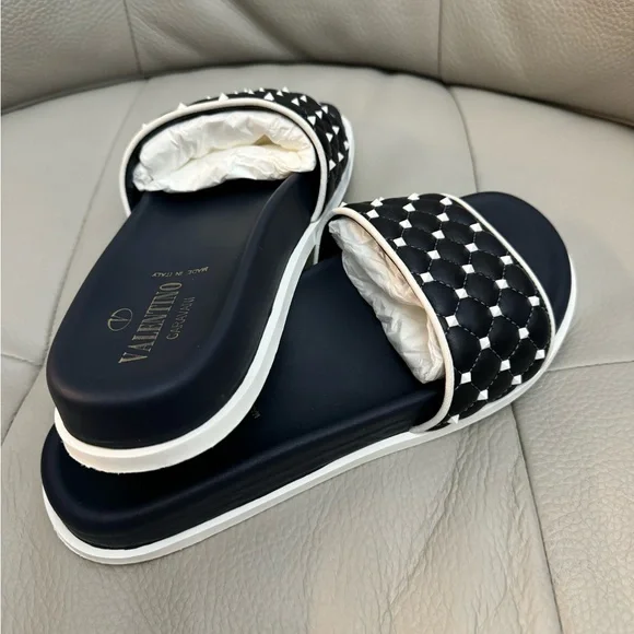 VALENTINO 3180 RockStud Spike Slide Marine Size 38,They are in perfect condition, worn 2-3 times. Made in Italy.Comes with box.