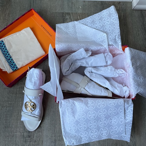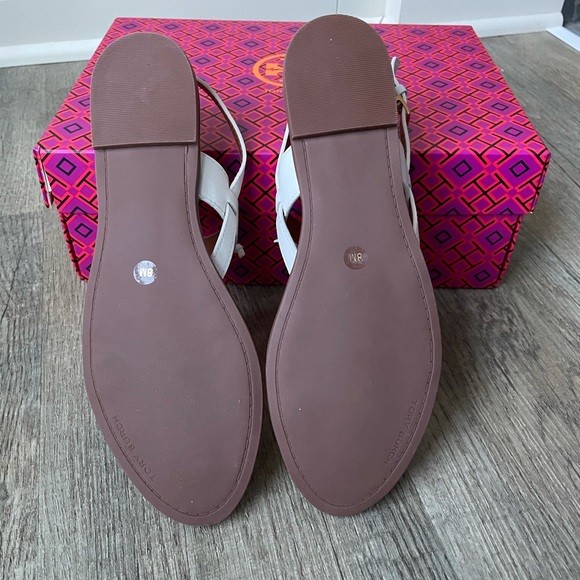 New in box comes with dust bag. Size 8. Runs small size up. White - bleach color A two-band style, crafted in finely milled leather. It features a metal-topped double ‘T’,...