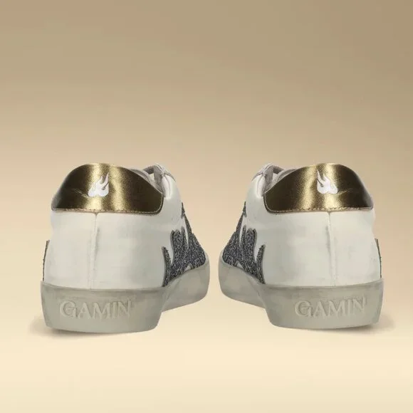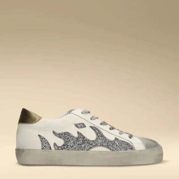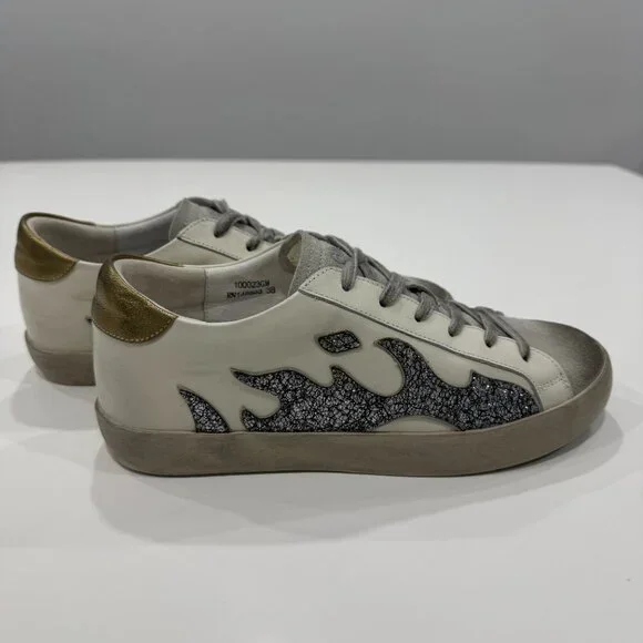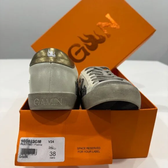NEW Bibi Lou Gamin Sneakers, Platinum Leather, Size 38/ 8.5