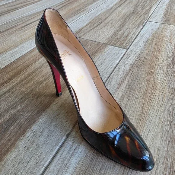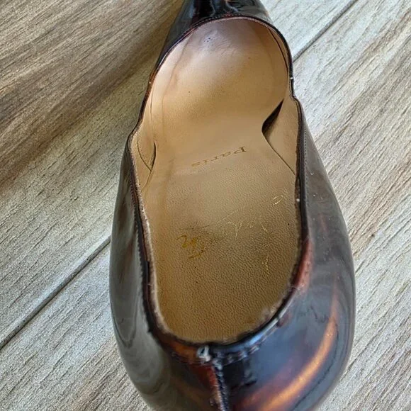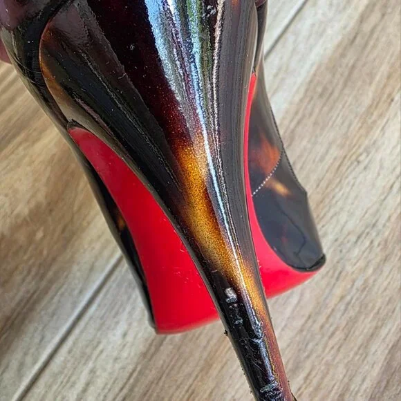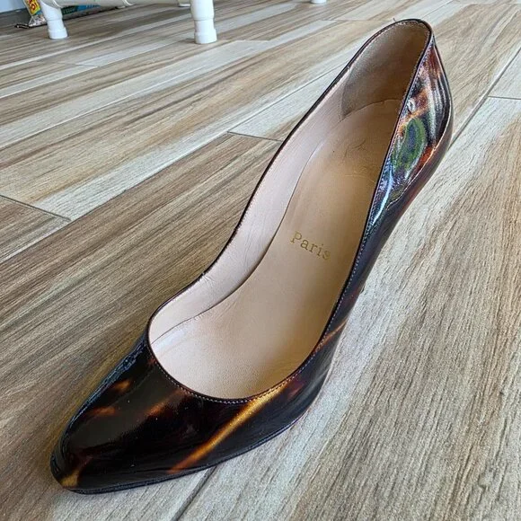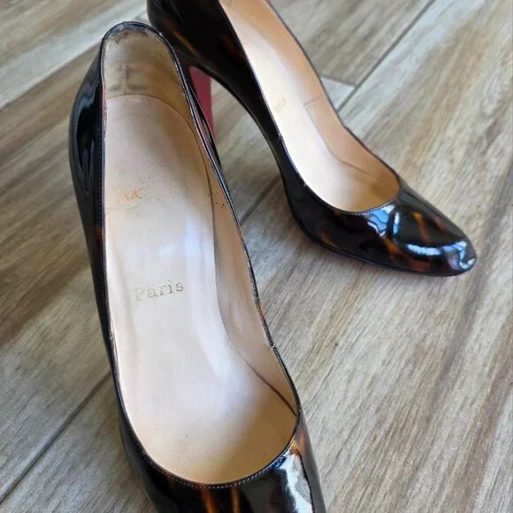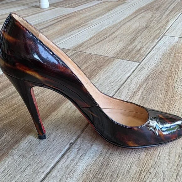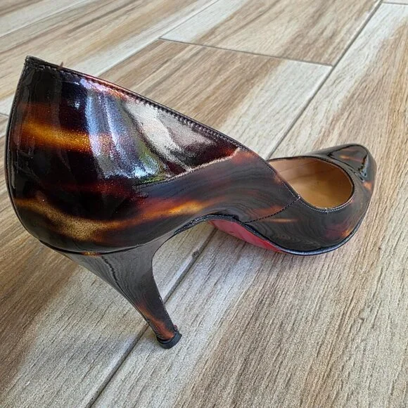 Christian Louboutin Ron-Ron 100 Faux Tortoise Patent Leather Shoes Eur. 39.5