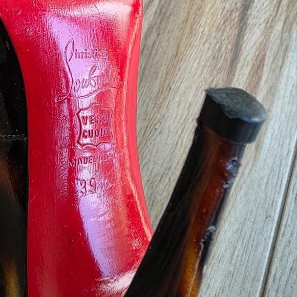 Cared for. Review all pictures. Bottom Repainted Red.Price is based on condition, size and Market Value. On Eby upwards of 550. Our prices are competitive. Compare. No returns nor refunds so let us know if you have any questions. Thank you. Happy Bidding. BXX.#87* Make sure these are your European size 39.5