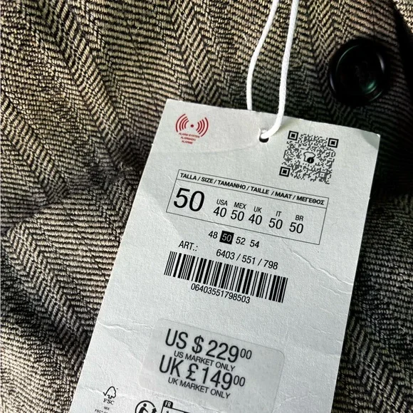 Zara Origins Men NWT wool herringbone blazer 6403/551