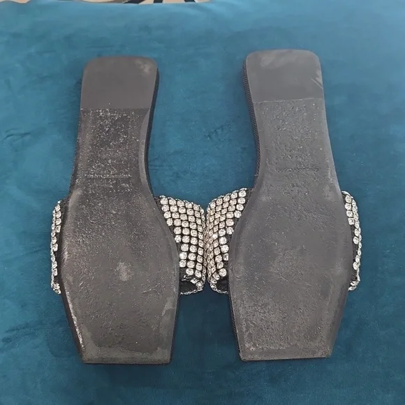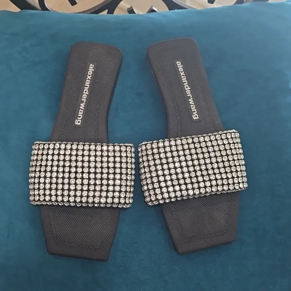Alexander Wang´s Anya flat sandals have got the wow factor. They feature a square toe with a padded footbed and a crystal-embellished top strap.Fits true to sizepre-lovedComposition: crystals, leatherImportednote: one crystal missing, not noticeable because it is on inner side bottom part of strap. (Pls see last 2 pics)No box!ba