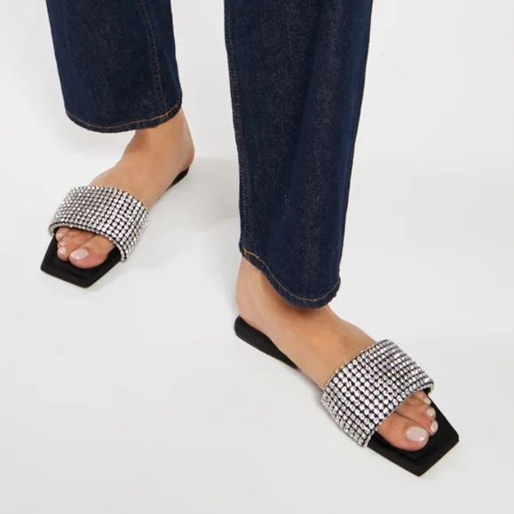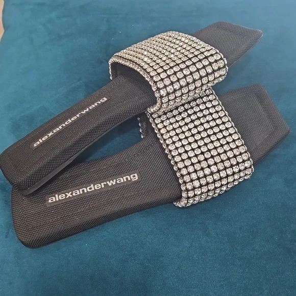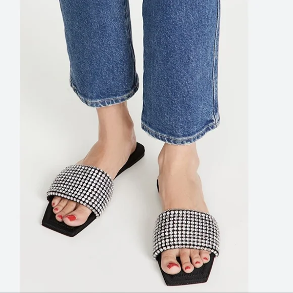 Alexander Wang Anya Crystal Flat Slide Sandals