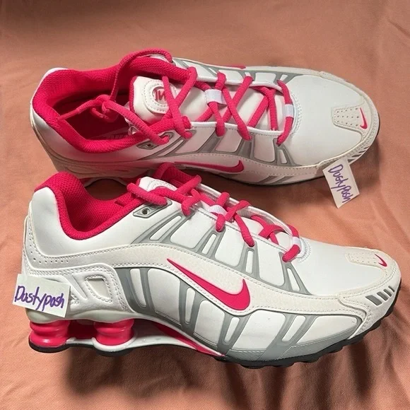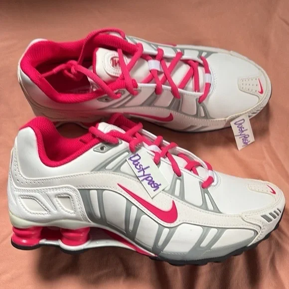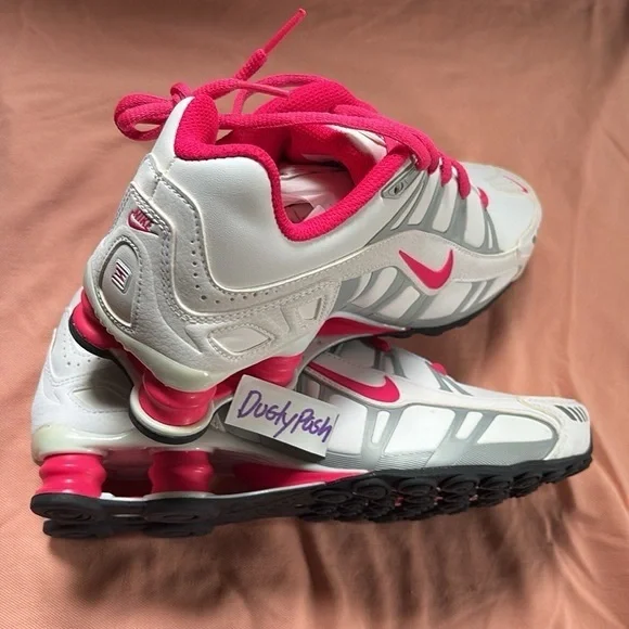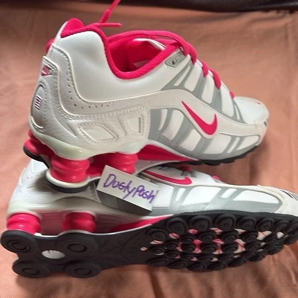 Women´s new never worn Nike Shox. Cute White hot pink leather sneakers. Size 8. Looking to sell not trade. Sold as this please look at all photos. New never worn, but have been in storage.