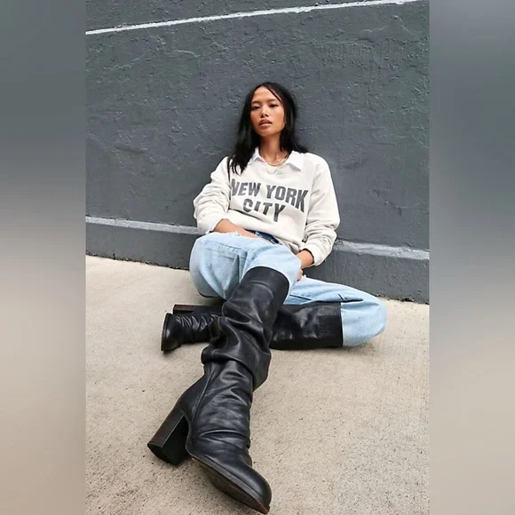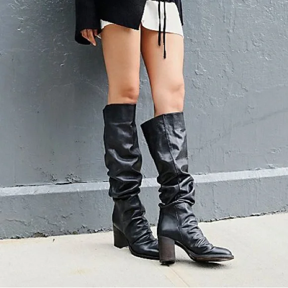 Our best-ever Elle Block Heel gets an even bolder update in a tall knee-high style with a slouchy design featuring distressed details and a high stacked heel.Pull-on silhouettePadded insoleRounded toeFit Note: This style fits true to size.FP CollectionArtisan crafted from fine leathers and premium materials, FP Collection shoes, bags and belts are coveted for their signature vintage aesthetic.Care/ImportMade in PortugalMeasurements for size 39Calf Circumference: 14.57 inTop Circumference: 14.76 inLower Calf Circumference: 13.39 inHeel: 3.15 inAnkle Circumference: 11.61 inShaft: 15.16 inContentsLeatherRubber