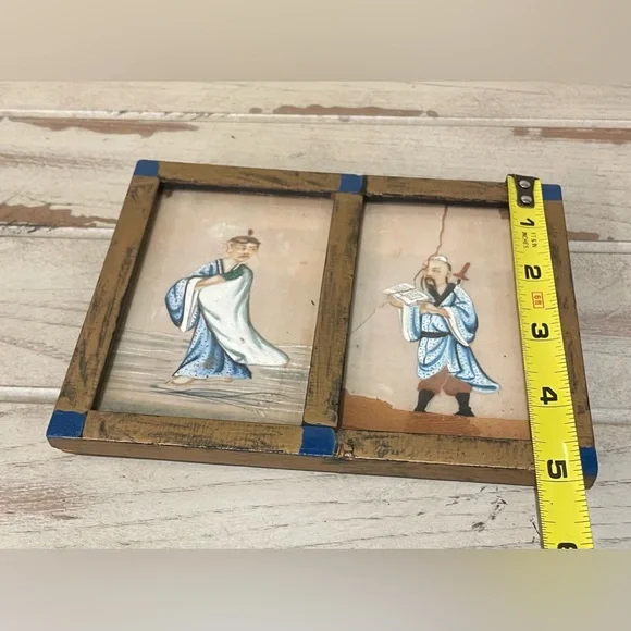 Antique Asian Paintings / Small Original Artwork / Framed Art