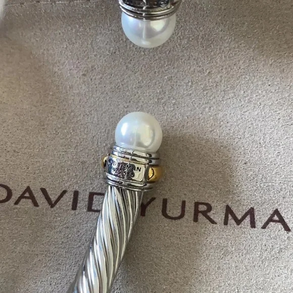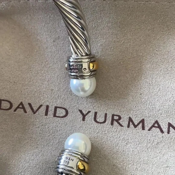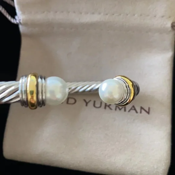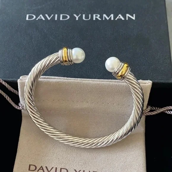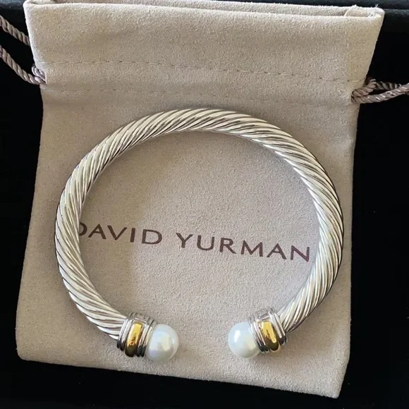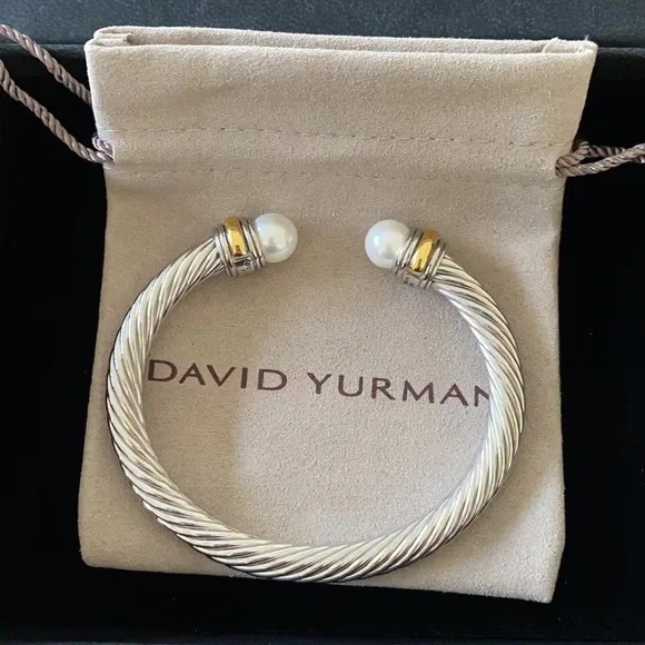 Elegant David Yurman bracelet featuring a classic silver cable design with gold accents. Perfect for adding a touch of sophistication to any outfit.