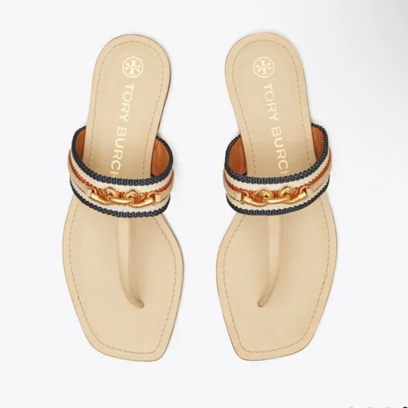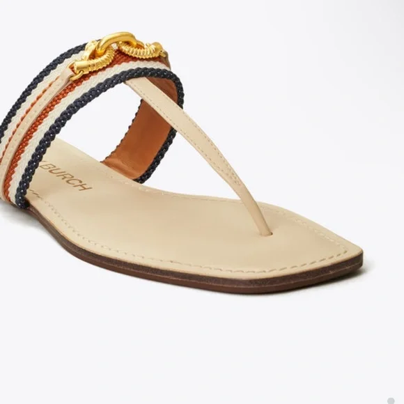 Brand New with Box Exaggerated chain-link hardware defines the Jessa Thong Sandal, a slip-on with striped ribbon detail.Calfskin and webbing upperNapa leather liningRubber outsole