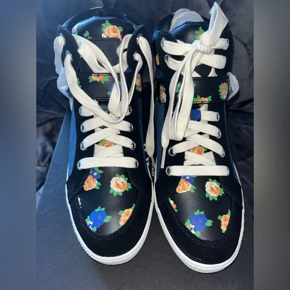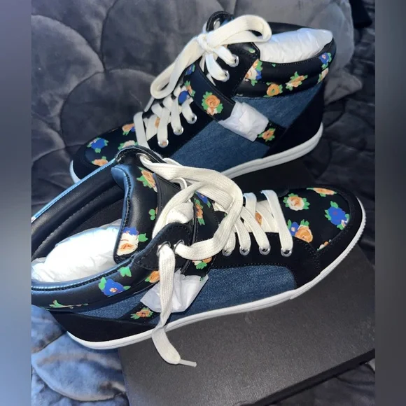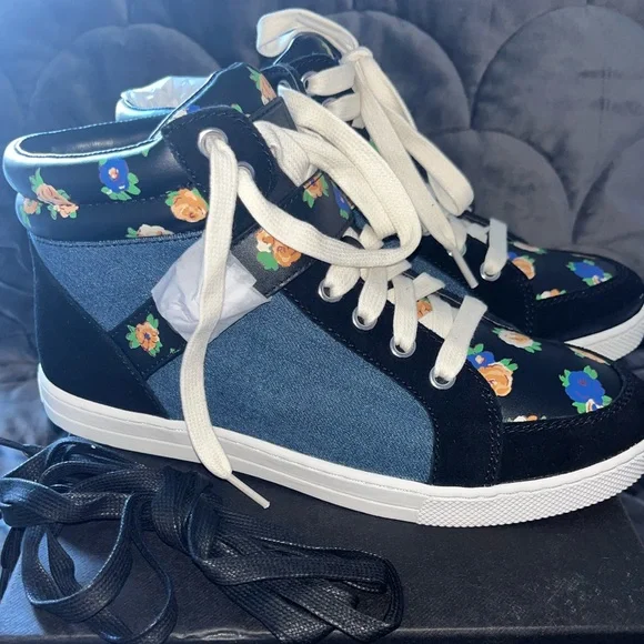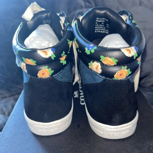 Coach Pembroke Tea Rose Floral Black & Blue Denim Shoes size 7.5 NIB