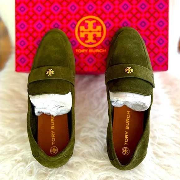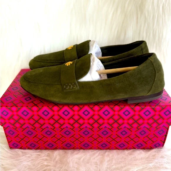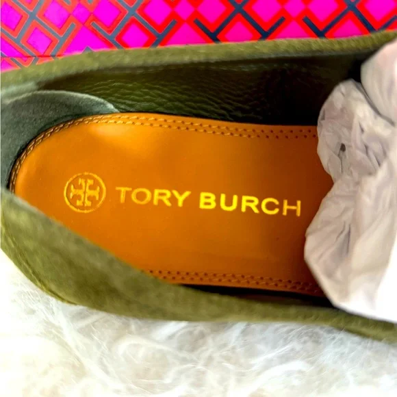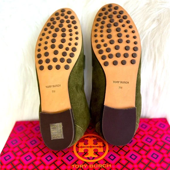 Tory Burch Ballet Loafer in suede leather. Brand new in original Box! Purchased directly from Tory Burch store. Size 7 Olive green color with gold Tory Burch signature. Very comfortable, classic, versatile and chic! From clean, pet free and smoke free home