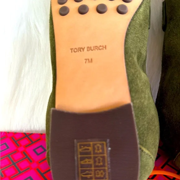 Tory Burch Ballet Loafer in suede leather. Brand new in original Box! Purchased directly from Tory Burch store. Size 7 Olive green color with gold Tory Burch signature. Very...