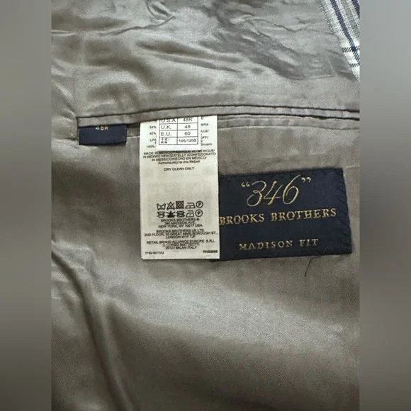 NWOT Brooks Brothers 346 Madison Fit 2-Button Multi Color Plaid Men’s Sports Coat Size 48RSize 48RMade in Mexico Up for your pleasure and consideration is a gorgeous NWOT Brooks Brothers 346 Madison Fit Multi Color Plaid Men’s Sports Coat Blazer Size 48R, Made in Mexico. Measurements inches:Left shoulder seam to right shoulder seam at top rear 20.5”Chest left armpit to the right armpit across 25”Waist width measurement at the natural waist of the jacket from left to right flat Sleeve front shoulder seam top to cuff edge on the front 25.5”Rear Length--rear bottom of collar to bottom of jacket.31.5”Please make sure that you check all of the pictures provided and ask questions whenever in doubt before you make a purchase. Wish you the best of luck and happy shopping.
