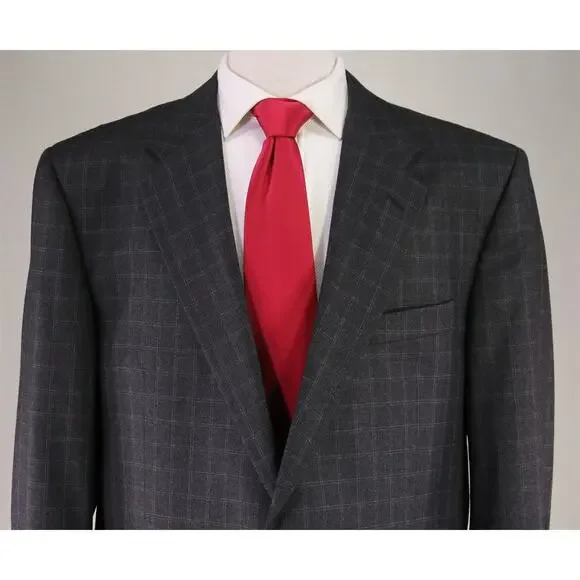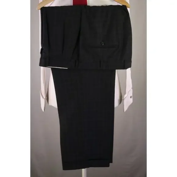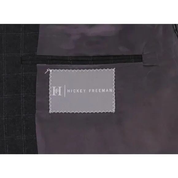 Brand: Hickey-Freeman * Size: 46L. Please follow my measurements * Measurements (Laying flat, Unstretched):Jacket:Underarm to Underarm on back: 23.5 inchesLength on back(from under the collar): 33 inchesWaist (at the middle/top button): 23.5 inchesShoulder to shoulder: 19.5 inchesSleeves from shoulder seam to end of cuff: 27 inchesExtra material to sleeves: 1.75 inchesPants:Pants Waist: 40 InchesExtra material on waist: 2.75 InchesPants Rise: 12.5 Inches (Measurement between the waistline and the crotch)Pants inseam: 31 InchesExtra material on inseam: 5.5 Inches uncuffedOpening at hem: 9.5 inches* Material: 100% Wool Weight: Medium to Light Weight* Color: Gray w/ White* Design: Checkered* Jacket:Two Button Single BreastedSingle VentThree Interior PocketsThree Exterior PocketsFour Faux Buttons on the cuffsFully Lined* Slacks:Double PleatsCuffed HemsSlanted Front PocketsLined to the kneesTwo Back Pockets* Made in USA* Condition: Like new. Gently Used. No stains or tears.* Inventory Code #S14374Powered by SixBit´s eCommerce Solution