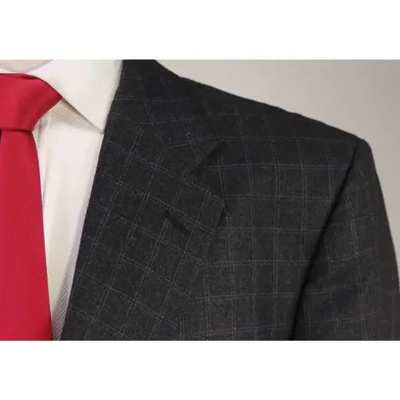 Hickey-Freeman Recent Limited Gray Checkered Wool Fleece 2-Btn Suit 46L