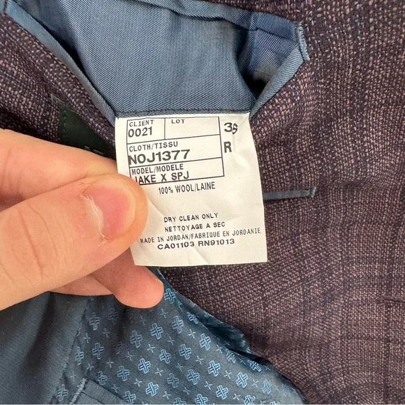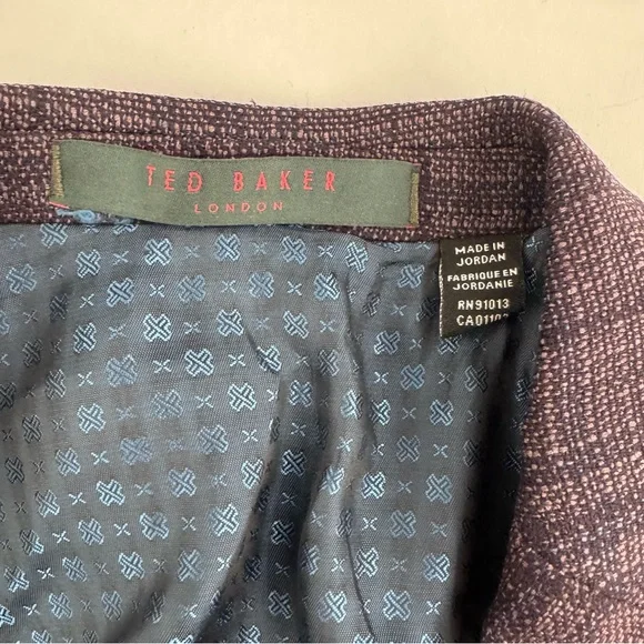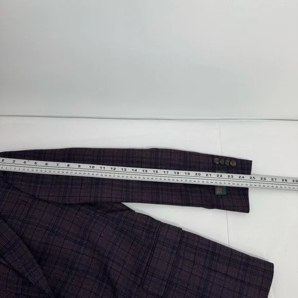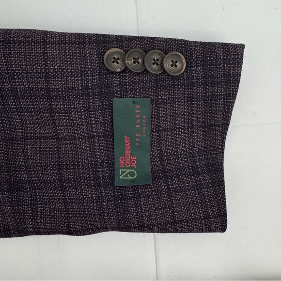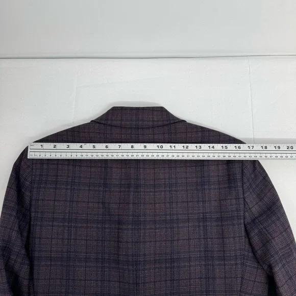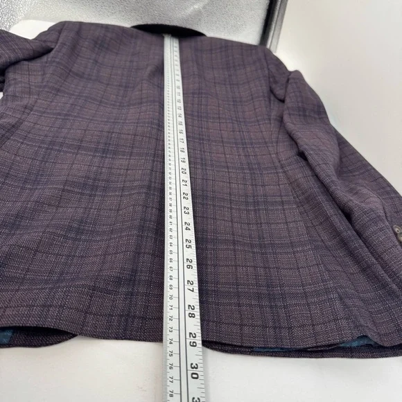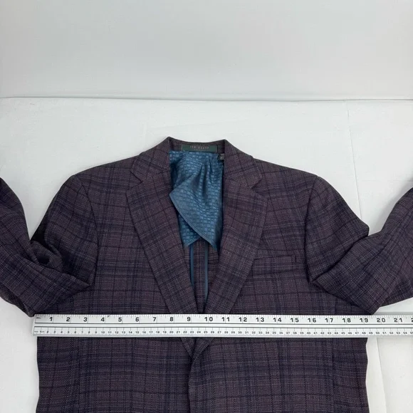NWT Ted Baker Joy SPJ Men’s 38 R purple plaid Wool Blazer Sport Coat $398Measurement laying flat +-0.5”Pit to pit is 19.5”Length is 29”Please see the measurements