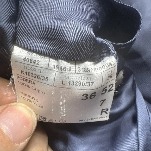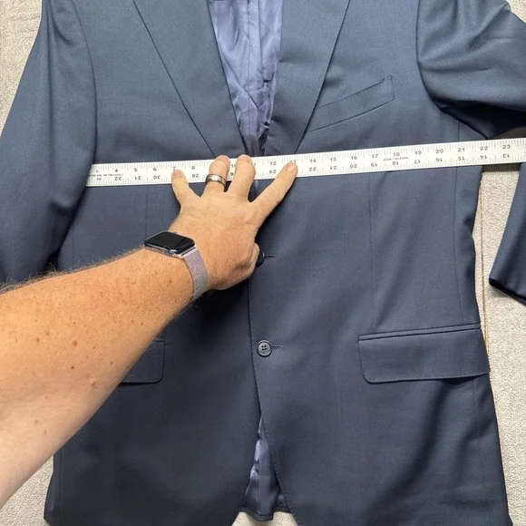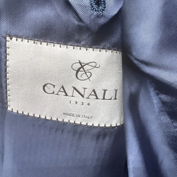 Elevate your wardrobe with this tailored navy blue wool blazer by Canali, crafted in Italy with luxurious 100% wool and a cupro lining. This size 42R sport coat features a classic notch lapel, two-button front, dual vents, and a full lining—perfect for business, formal events, or refined everyday wear. Elegant, versatile, and impeccably made.Key Features:• Brand: Canali• Size: 42R (tag: EU 52R / US 42R)• Material: 100% wool shell, 100% cupro lining• Color: Navy blue• Style: Notch lapel, two-button front, dual vent• Made in Italy• Excellent pre-owned conditionApproximate Measurements:• Chest: 22.5" (pit to pit)• Shoulder to shoulder: 19"• Length (collar base to hem): 31"A timeless essential for any gentleman—ships fast and professionally packed!
