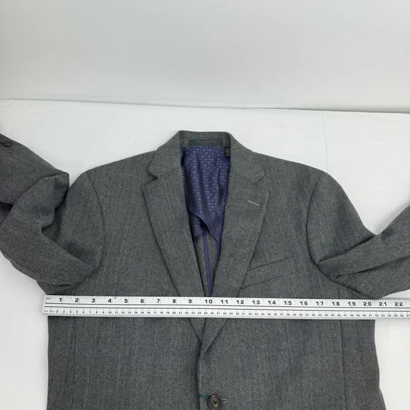 NWT Ted Baker Joy SPJ Men’s 40 R Herringbone Gray Wool Tweed Blazer Sport Coat $398Measurement laying flat +-0.5”Pit to pit is 20.5”Length is 29.5”Please see the...