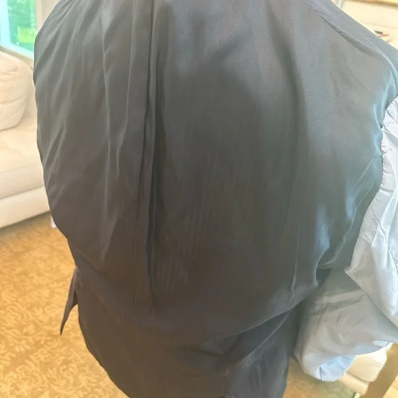 Abboud Slim Fit Heritage Wool/Cotton Navy Blue Hereingbone Blazer US 50R