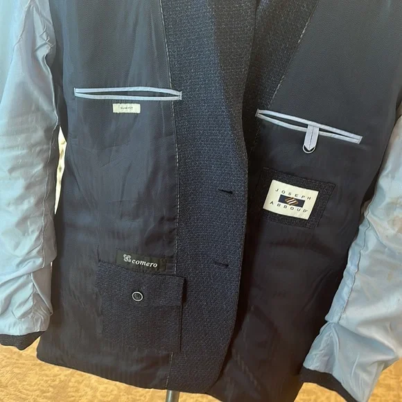 Rich lighter navy slim fit comera wool heritage blazerMSRP of $280Lightly Used & Properly StoredSlight discoloration inside left arm lining (see pictures)Narrow peak lapel, boat chest pocket & flap side pocketsChest ~25-26Waist ~23-24Shoulders 21Length 31Wool/Cotton 50R US
