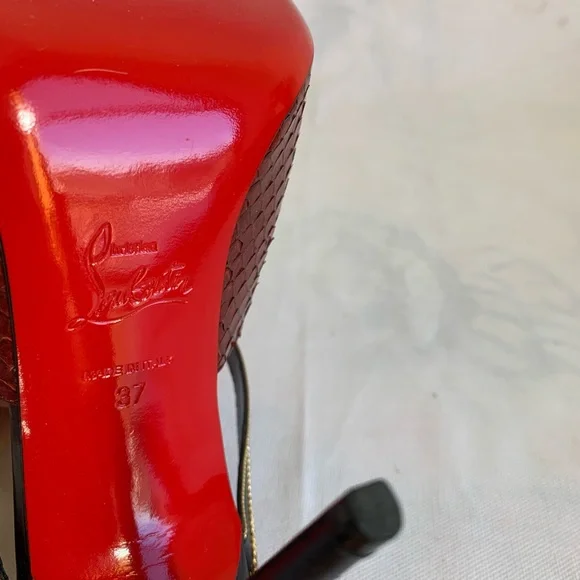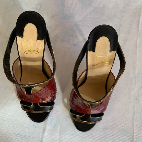 unworn Christian Louboutin Heels – Size 37 EU Akenana 100 in red and black calf/python finish . Love them but can’t wear heels anymore .comes with original box. Retail : $1,195Asking: $259