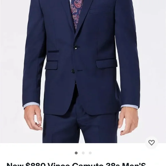 New $880 Vince Camuto 38r Men´S Blue Slim Fit Wool Suit