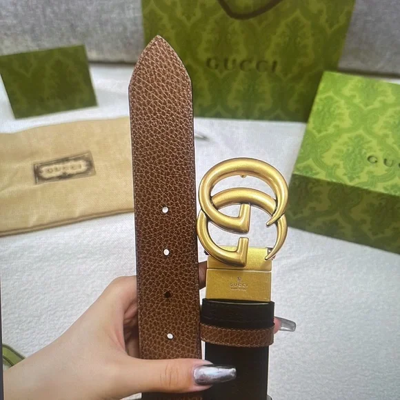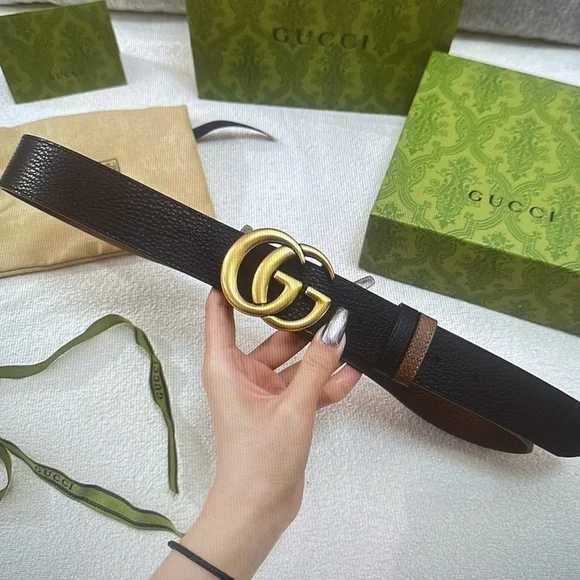 Elegant belt in black leather. Features a bold gold GG emblem. Ideal for elevating any look.