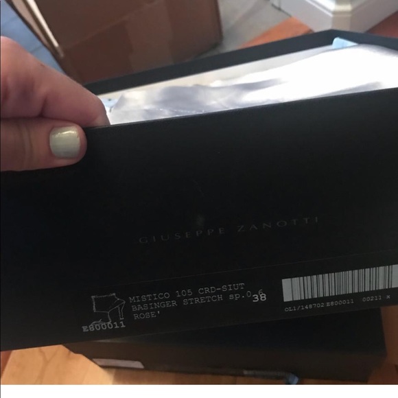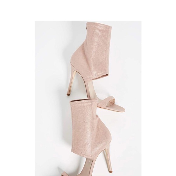 Brand new! Brand new with box size 8. In rose color.Fabric: Metallic canvasStrappy silhouetteStiletto heelRounded toeOpen toeRubber heel patch at leather soleMade in ItalyStyle # GIUSZ40518Heel: 3.75in / 98mmRose gold is the new black. You´ll turn heads as soon as you step out in this pair of stilettos—they make looking good too easy.