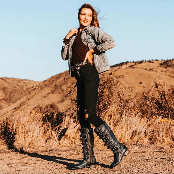 BRAND NEW. Distressed Navy Blue. Best suited for 6.5 or 7. Side Zipper. Decorative Studs. Please see the 2nd slide for more details. Boots will be mailed in the original box with...