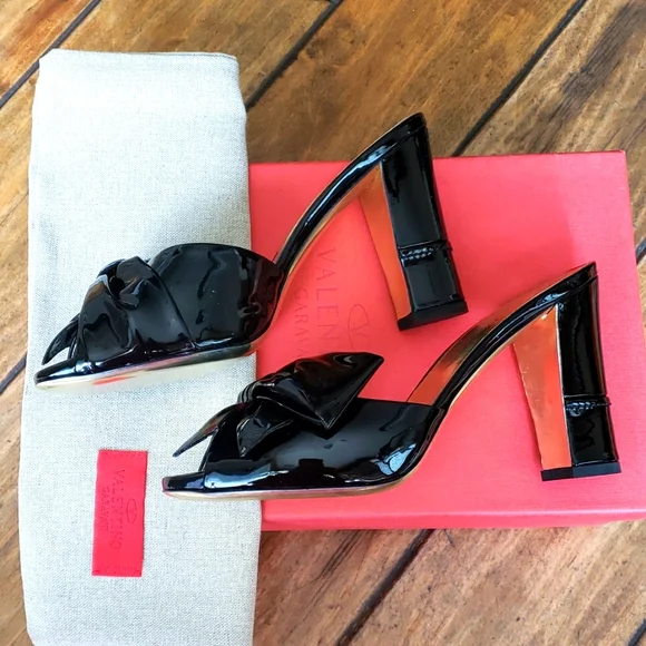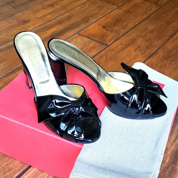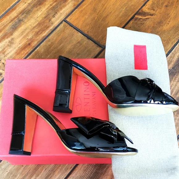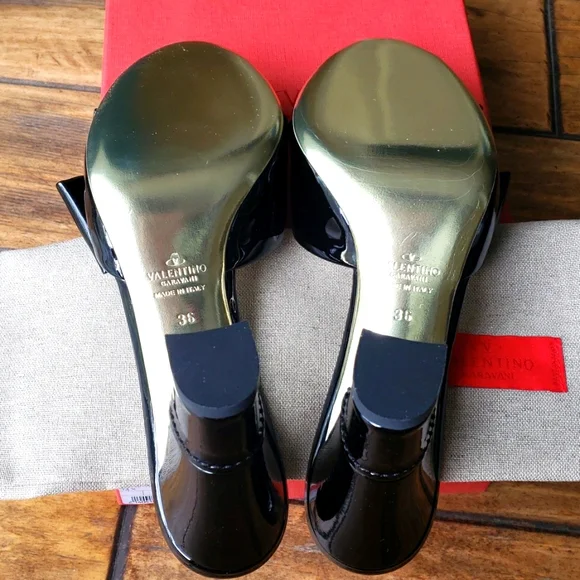 New Authentic VALENTINO GARAVANI Black Heels Sandals Slides 36