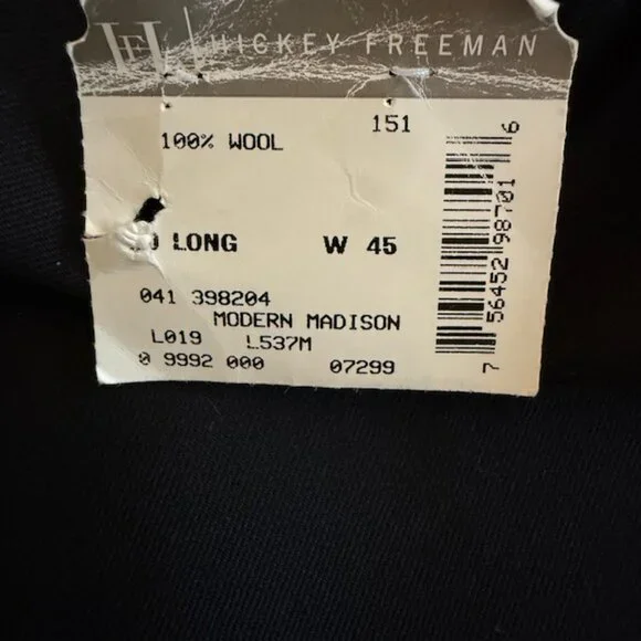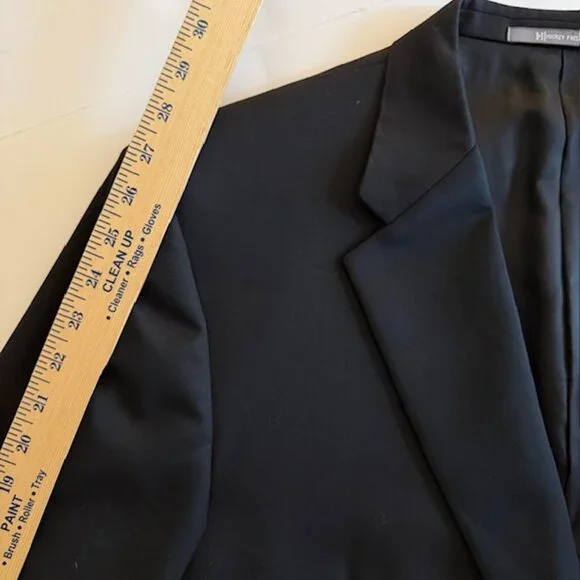 The Hickey Freeman Loro Piana Tasmanian Super 130s Men´s Black Blazer is a sophisticated and stylish addition to any wardrobe. Made from high-quality wool fabric, this long blazer features a single-breasted design with a notch lapel and a one-button front closure. Ideal for formal or business occasions, this blazer is crafted in the United States and is perfect for all seasons. With its modern fit and sleek black color, this designer piece is sure to make a statement. Very good pre-owned condition. No tears, rips, holes. Buttons present and intact1360XPST