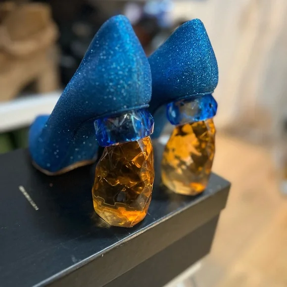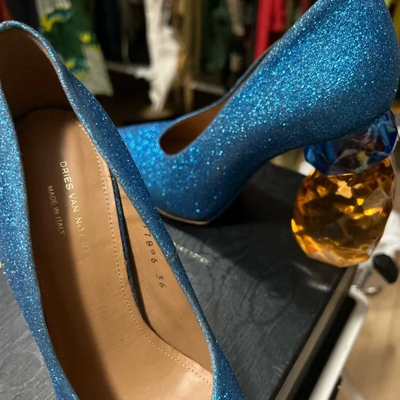 Dries Van Noten Blue Glittery Heels