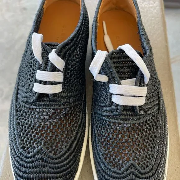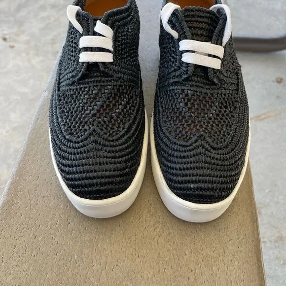 Worn once and in new condition in a size 39, US8.5. black woven/ mesh with white platform heel Lace up loafers