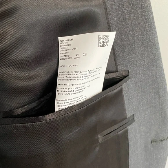 Boss Hugo Boss Johnson/Lennon Regular-fit Virgin Wool Blazer.Treat your business wardrobe to this impeccable suit jacket, crafted in yarn-dyed virgin wool with natural stretch and intense depth of color. - Two button fastening- Notch lapels - Welt chest pockets- Flap pockets- Inside jet pockets- Kissing buttons on the cuff- Side vent- Fully lined- NWT unworn, missing an original tag