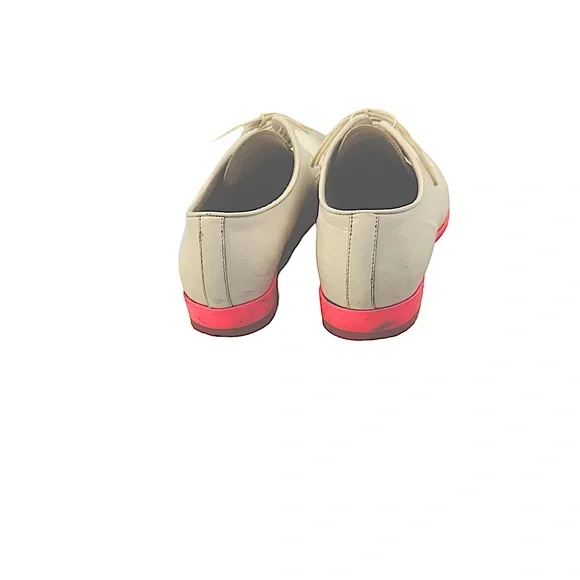 White leather lace up loafers with pink rubber soles...gently loved, fun, festive and extremely comfortable!!! SZ37, or 6.5