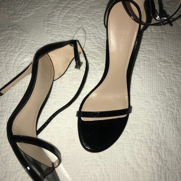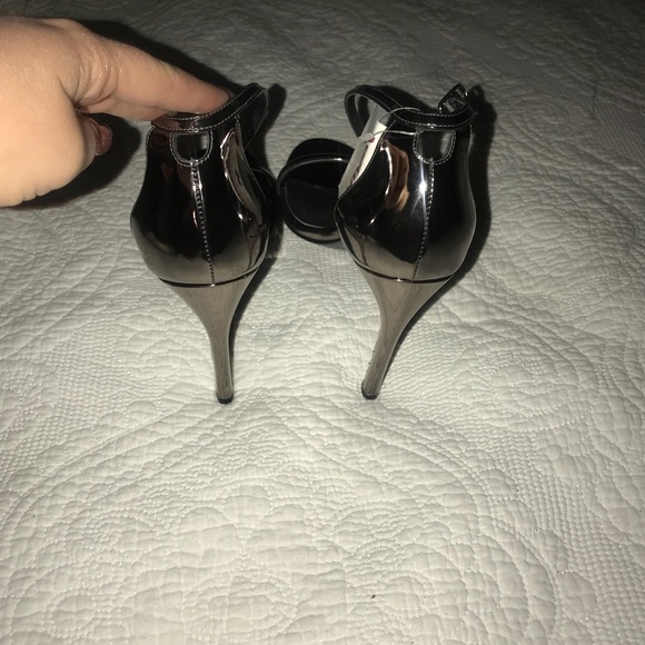 Doesn’t come with box or dust bagBlack size 9Metallic size 7.5MEASUREMENTS Heel height: 3.95", 100mmHeel measurements are made on a size 6 shoe. There may be slight measurement variations based on size.FEATURES Strappy sandalStiletto heelAdjustable ankle strapMATERIALS PatentLeather insoleLeather sole