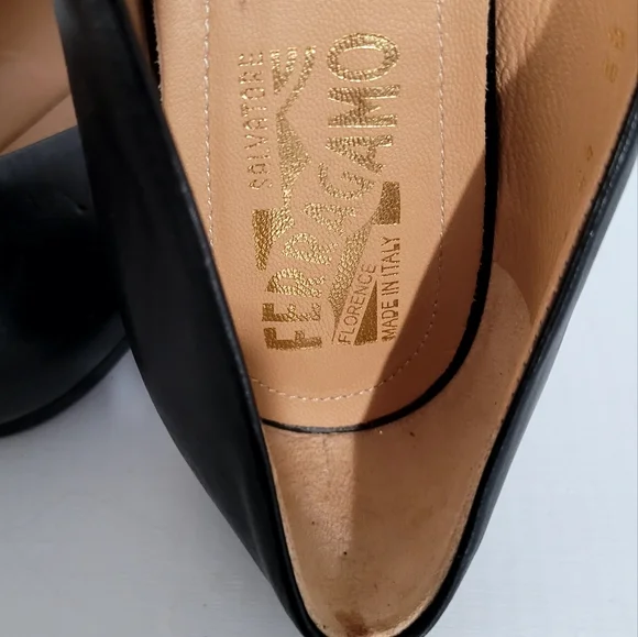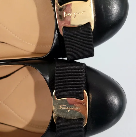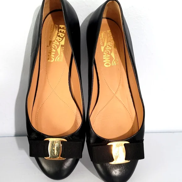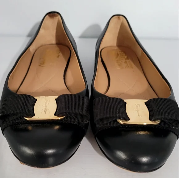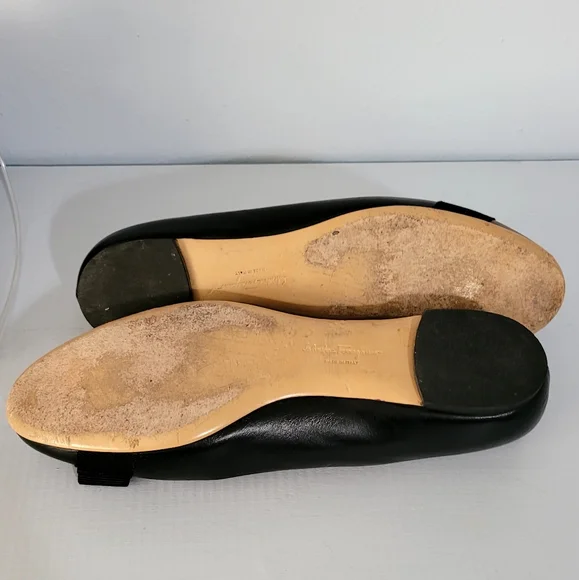 Salvetore Ferragamo Black Leather Bow Flats