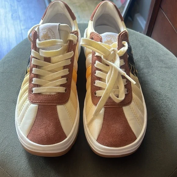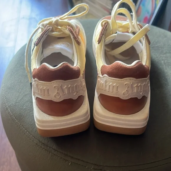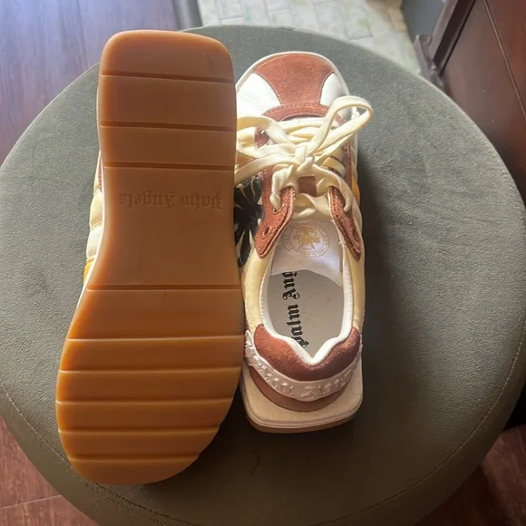 These shoes boast a vibrant yellow and brown color scheme, perfect for making a statement. The low-top design features a unique palm tree silhouette on the side, adding a touch of...