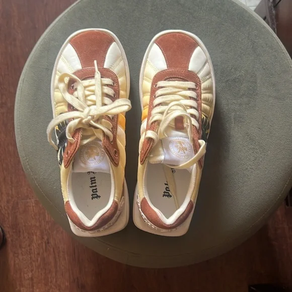 Palm Angels Yellow and Brown Retro Low-Top Sneakers with Palm Tree Design