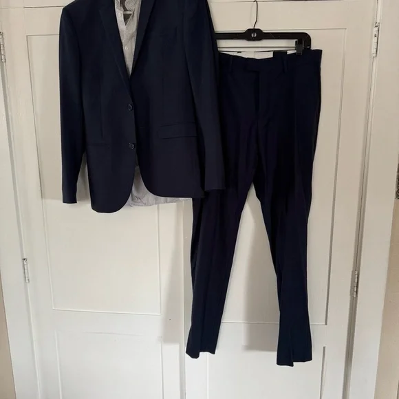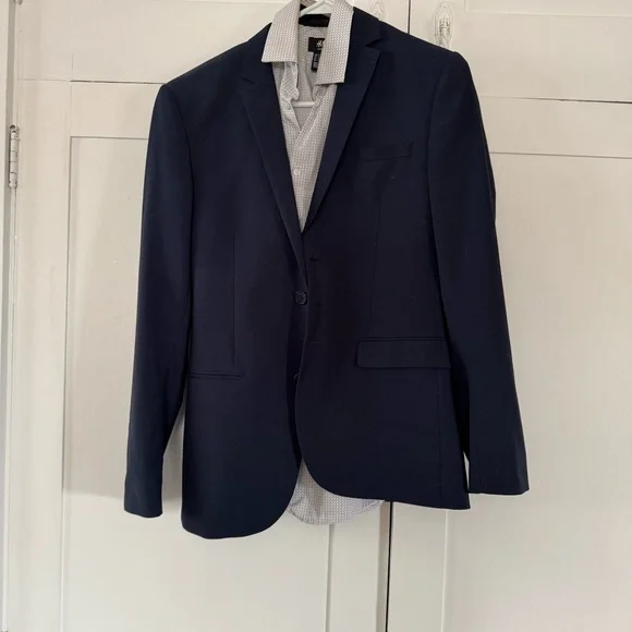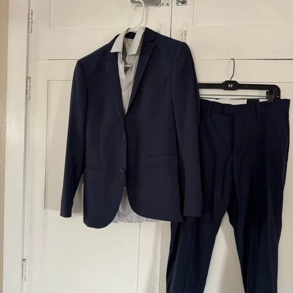 H & M Navy Blue Men’s Suit Shirt S/M Pants 33R