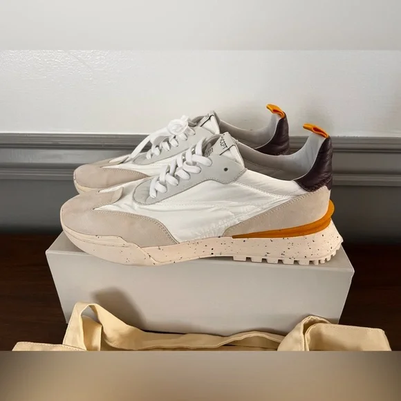 A trainer with a futuristic silhouette and eco-conscious design elements. Features water resistant re nylon, chrome free suede, tencel pulp based twill lining and signature re...