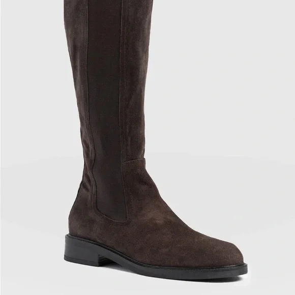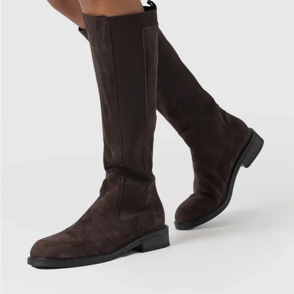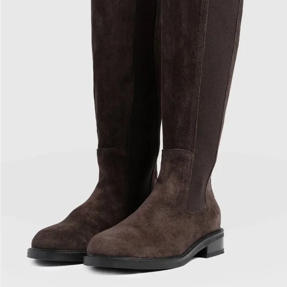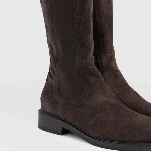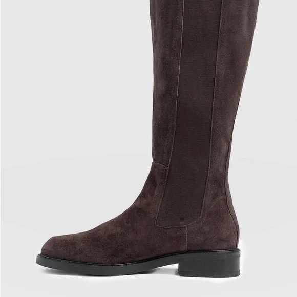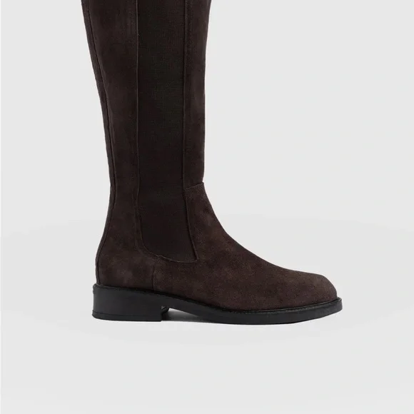 Suede knee-high boots with an elasticated side panel