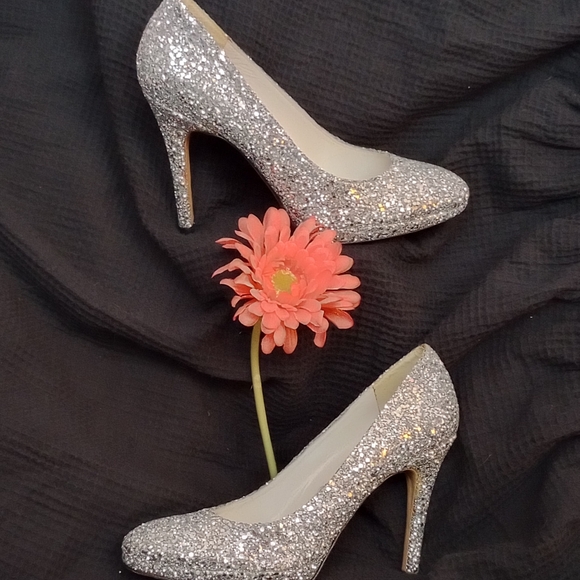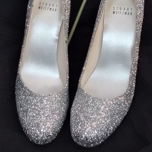 Stuart Weitzman round toe pumps4.25" healsSilver glitterNEWNew Years Eve, weddingStatement shoes!
