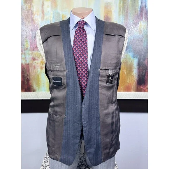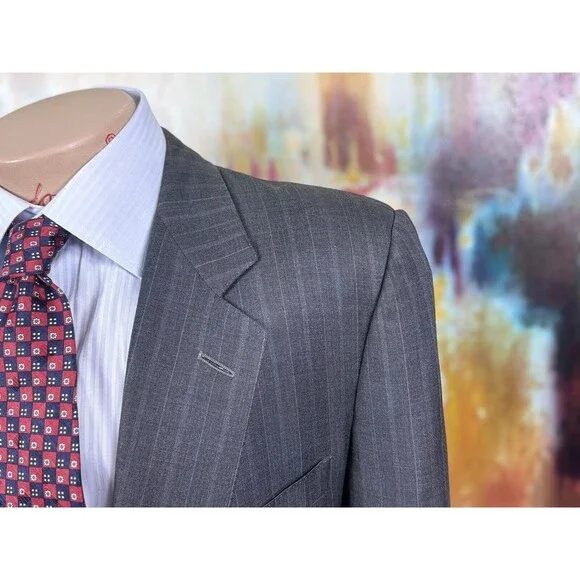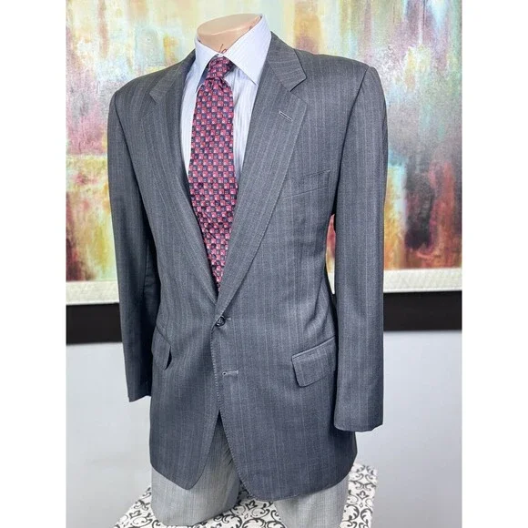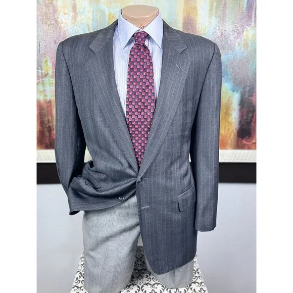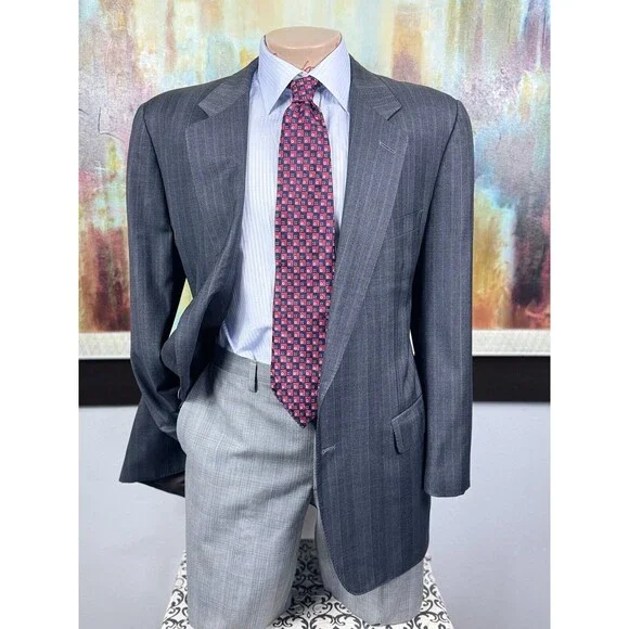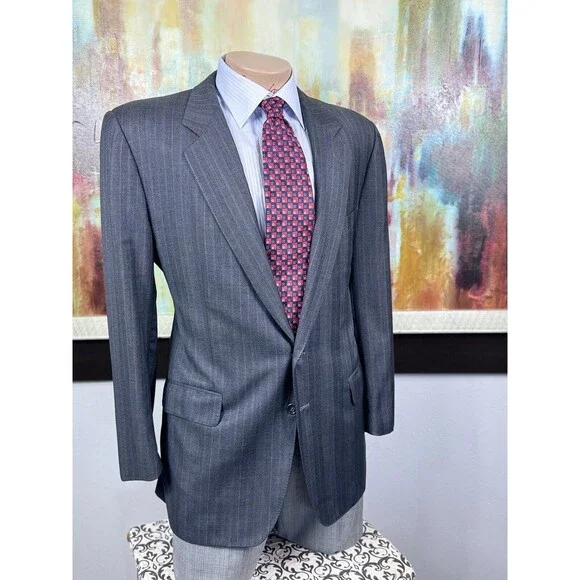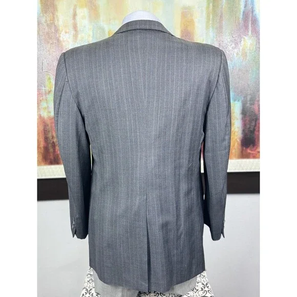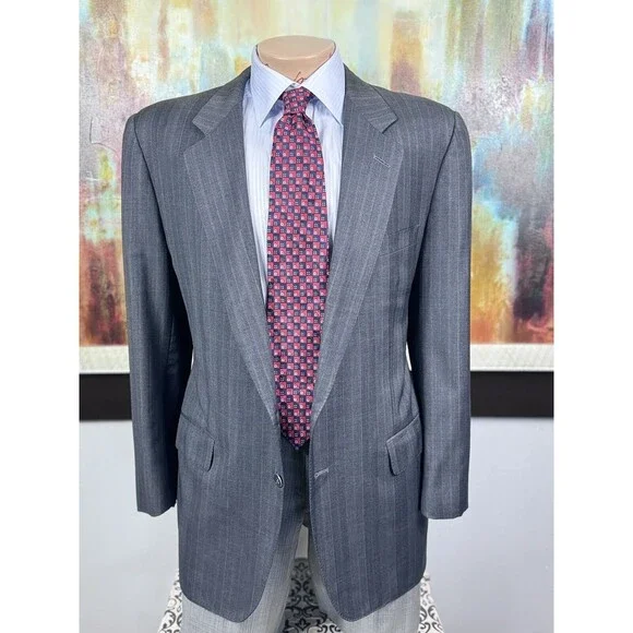 Ermenegildo Zegna Mens NWOT Retro Gunmetal Striped Blazer 40R MSRP $1120* Welcome to The Opulent Gent; A Splendid Collective. Presented is a vintage, beautiful sport coat by Ermenegildo Zegna. New without tags. Made from their Italian clothier using super worsted wool. Gunmetal gray with alternating striped patterns. Two button and double vented. With pick stitching around pockets and lapels. Ive paired with a Canali shirt and geometric tie. If you purchase the jacket full price Ill include a tie for free. Check my store for anything else youre interested in. More measurements below as well as listed in pictures. Please be aware that all sales are final. Any questions feel free to ask. Thanks for visiting and have a great day!* ~ITEM~ Sport Coat* * ~CONDITION~ New without tags* * ~LISTED SIZE~ 40R* * ~ BRAND~ Ermenegildo Zegna* * ~EDITION~ N/a* * ~STYLE~ 2 button* * ~PATTERN~ Striped* * ~COLOR~ Gunmetal, blue* * ~MATERIAL~ 100% wool