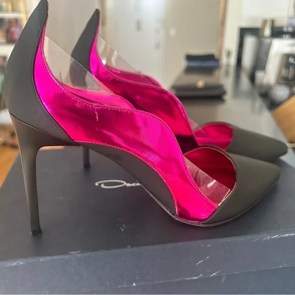 Beautiful Oscar de la Renta PVC-PaneledMirrored And Smooth Leather Pumps Pointed toePerspex heel - 3” Slip on Made in ItalyBox and dust bag included