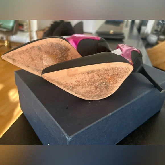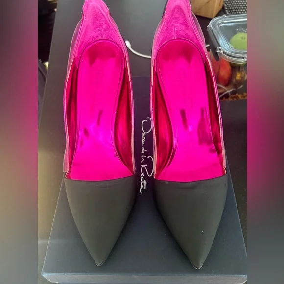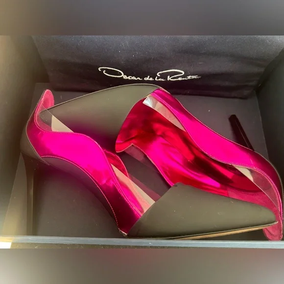 OSCAR DE LA RENTA "CAMILLE" WOMEN´S PUMPS IN BLACK/METALLIC PINK SIZE: 38